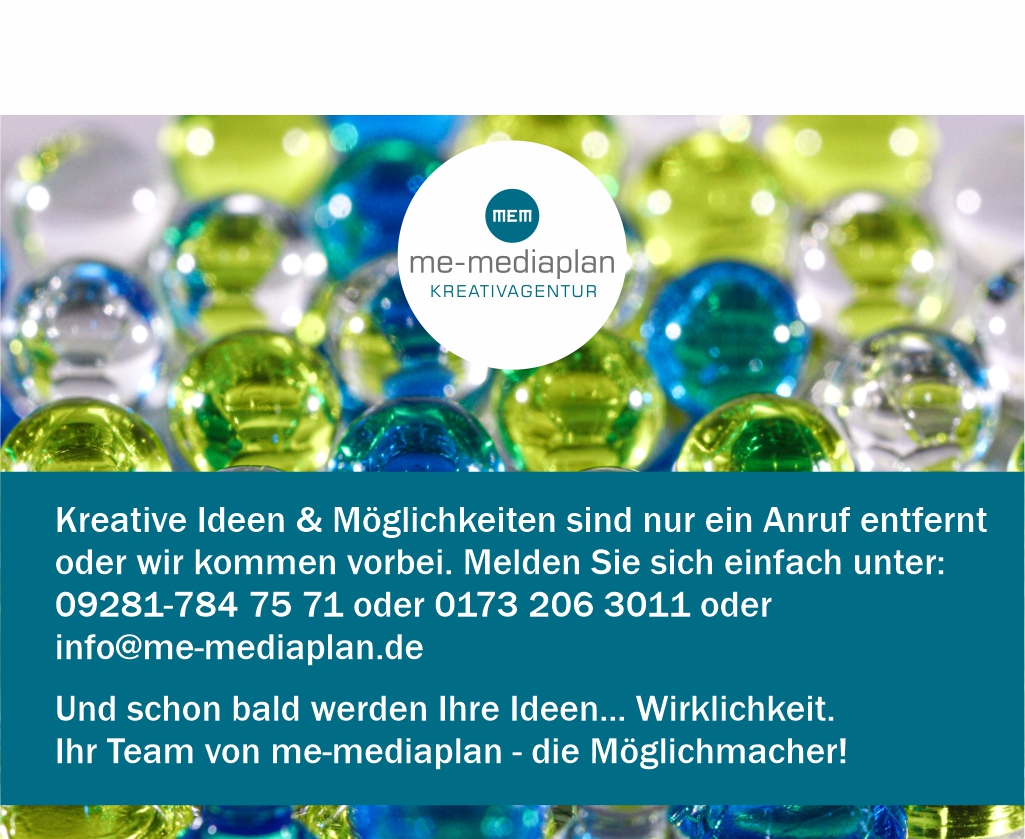 T:+49 (0) 9281 - 784 75 71 M: inf@me-mediaplan.de W: me-mediaplan.de |